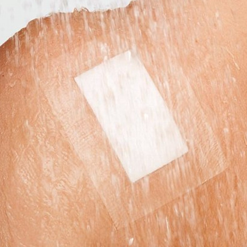 >- Összetétel: Hordozófólia (100% poliuretán), lágy poliakrilát ragasztó a bőr számára (gyanta vagy gyanta származék nélkül)