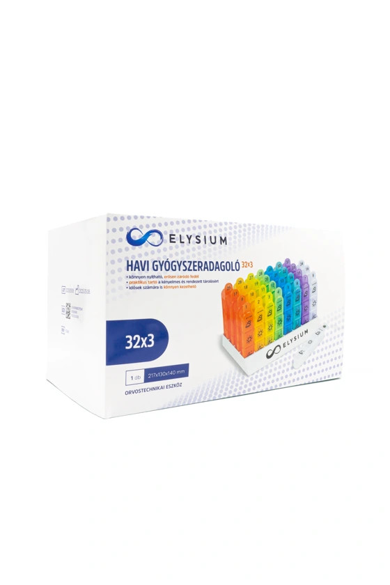 - 32 darab napi tárolódoboz, 3 rekesszel