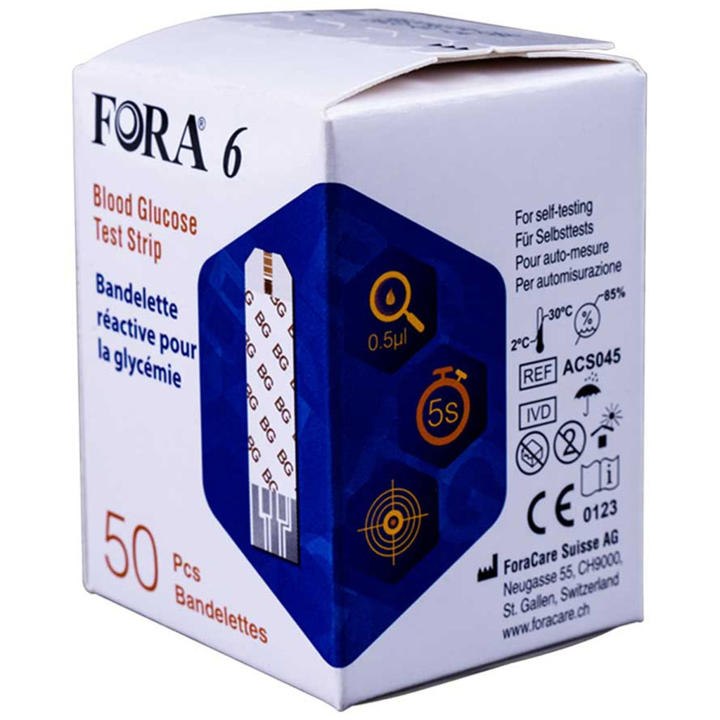 >- A FORA 6 vércukor tesztcsíkok a Fora 6 Connect Multi-Functional Monitoring System rendszerrel együtt használva lehetővé teszik vércukorszintjének otthoni vagy egészségügyi szakember általi mérését.