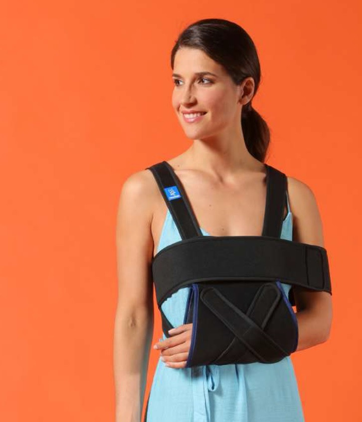 HATÉKONY RÖGZÍTÉS:•Vállrögzítő, amely lehetővé teszi a váll és/vagy a könyök rögzítését befelé rotációban.•Kiegészítő pánt a rögzítés biztosításához.
