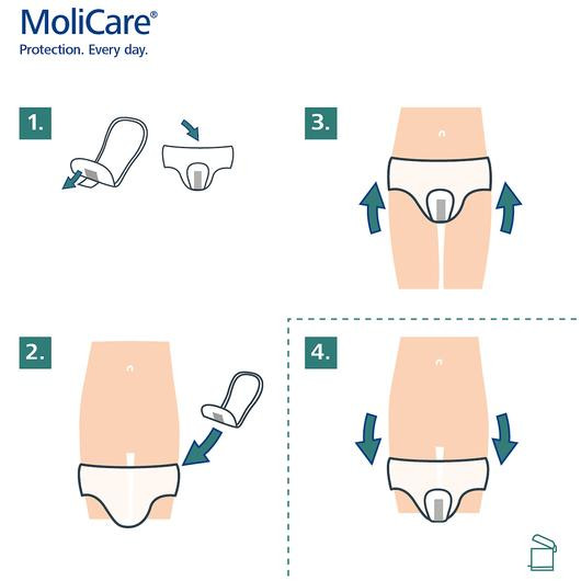 - Új MoliCare SkinGuard® nedvszívó mag technológia fejlett bőrvédelemmel, amely akár 67%-kal gyorsabban szívja fel a vizeletet és semlegesíti a kellemetlen szagokat