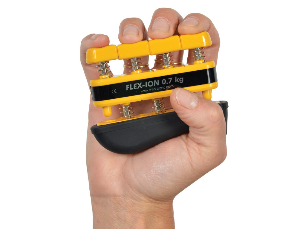 Flex-Ion: rehabilitációs tréner az ujjak mozgásának, erejének javítására. 6 erősségi fokozat, melyet eltérő színek jeleznek.