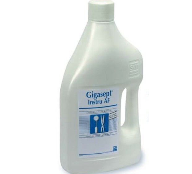 Termék leírása: - 2 literes flakonban, tiszta, zöld folyadék - Kombinált aldehidmentes eszköz és műszerfertőtlenítő - Friss illatú - Alkalmazási területek: hőálló és hőérzékeny műszer, eszköz tisztítására és fertőtlenítésére (kivételt képeznek a flexibilis endoszkópok) - Kitűnő véreltávolító hatású - Mikrobiológiai hatásspektrum: Baktericid, fungicid, Hepatitis B, Hepatitis C, HIV, adenovírus, rotavírus,papova SV40 vírus, megfelel az új Európai szabványoknak. Ultrahangos tisztító kádakban baktericid, fungicid, és retro vírusok ellen (HIV, HBC, HCV) - Az elkészített munkaoldat mikrobiológiai hatásossága, és tisztító hatása szérumterhelés mellett 7 napig garantált. - Összetétel: 14 g kókusz-alkil-propiléndiamin-biguadínium-diacetát, 35 g fenoxipropanol, 2,5 g benzalkónium-klorid, 5-15% nem ionos tenzidek, oldóanyagok, PH stabilizátorok, korróziógátló komponemsek, színező és illat anyagok. -Koncentrátumok, és behatási idők: Baktericid, fungicid, mikobaktericid: 3%-os oldat-15 pec, 2%-os oldat 30 perc, 1,5%-os oldat 60 perc Retro vírusok ellen(HIV,HBV,HCV) 0,5%-os oldat 5 perc Adeno vírus 4%-os oldat 60 perc Papova S40 vírus: 4%-os oldat 60 perc Ultrahangos tisztító kádban: baktericid, fungicid, retro vírusok (HIV,HBV,HCV) ellen 3%-os oldat 5 perc