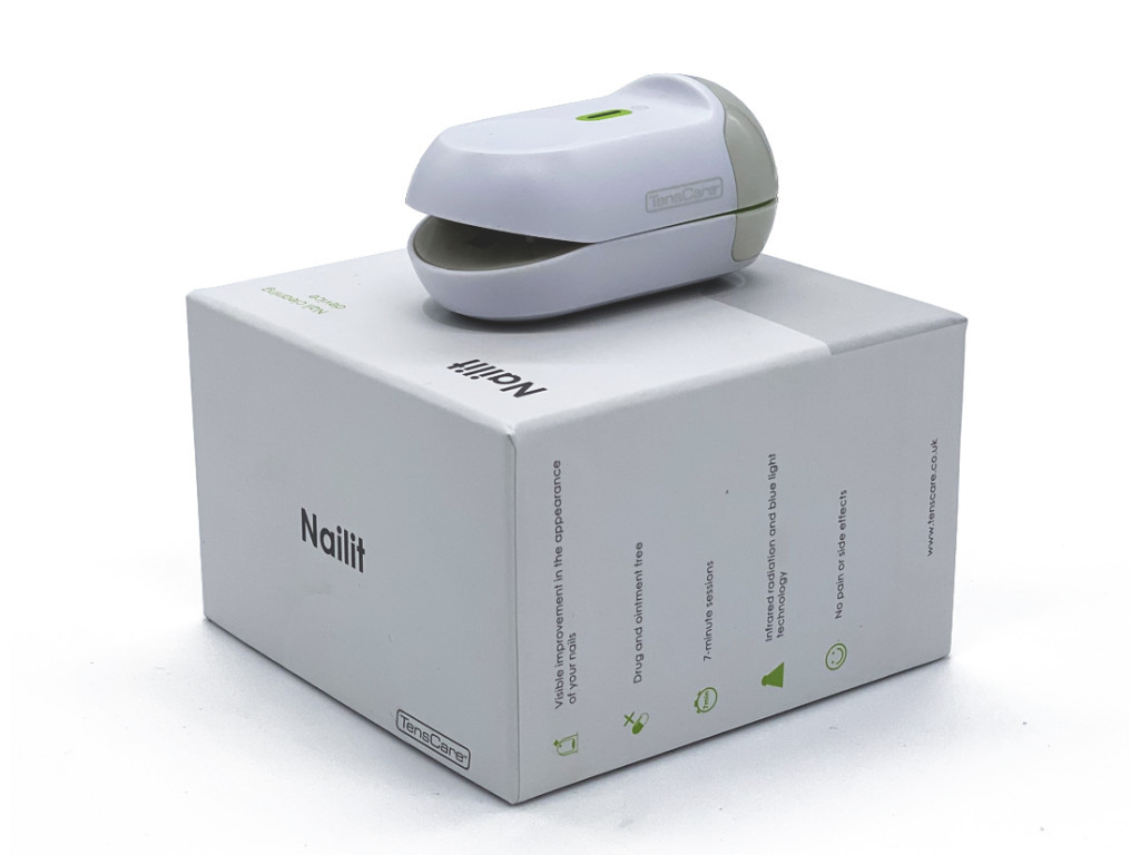 Otthoni, gyógyszermentes kiegészítő kezelésre tervezett készülék, amely segíthet a gombás körmök megjelenésének javításában.