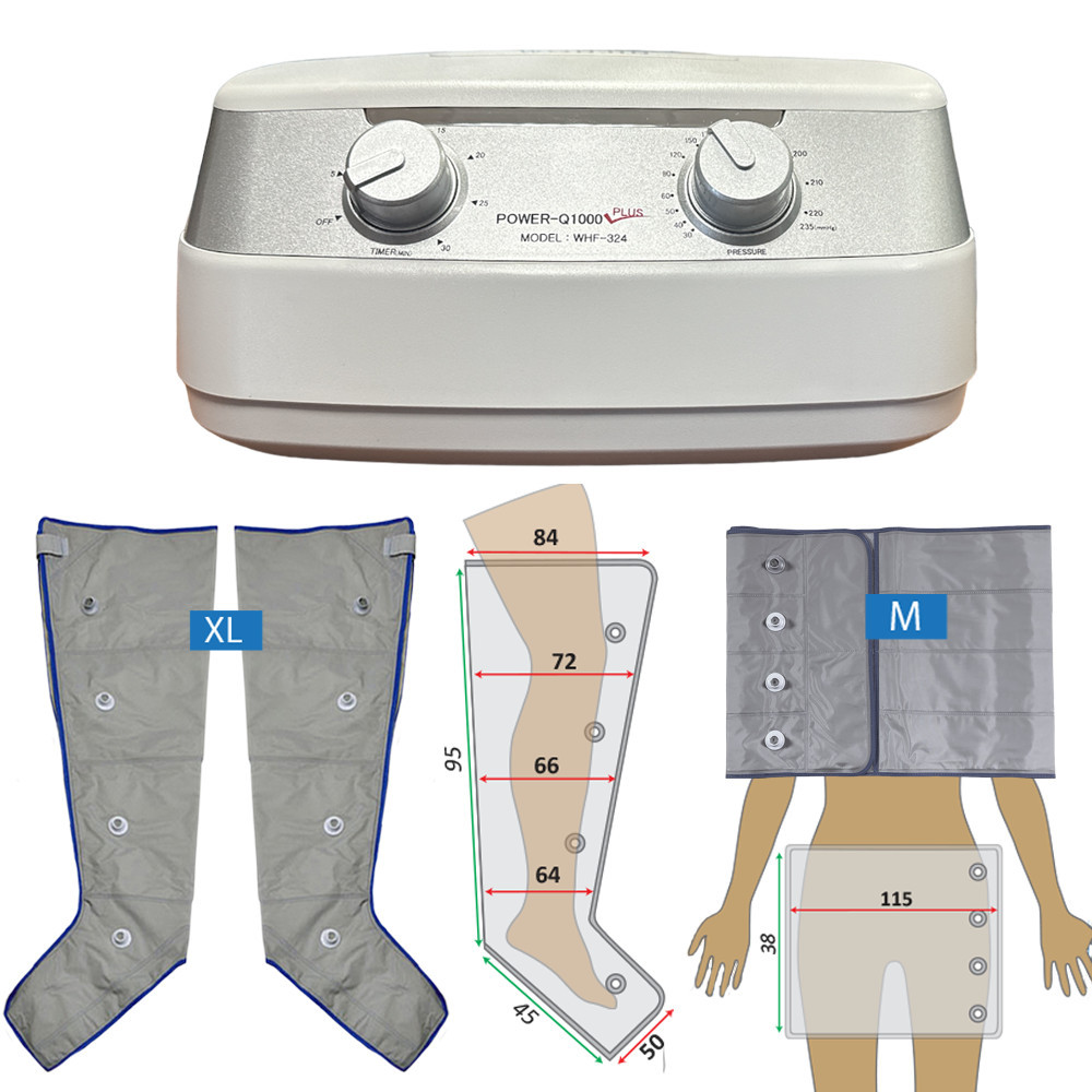 Ár tartalma: Power Q-1000 Plus készülék (1db); Láb mandzsetta: XL méret (1pár, azaz 2 lábra); Öv mandzsetta: M méret légtömlő (1db); Légtömlő: 4 elvezetéses (1db); 2x4 elvezetéses (1db), elosztó (1db).