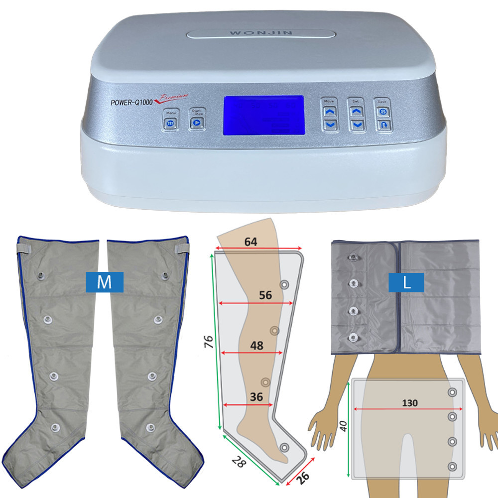 Ár tartalma: Power Q-1000 Premium készülék (1db); Láb mandzsetta: M méret (1pár, azaz 2 lábra); Öv mandzsetta: L méret (1db); Légtömlő: 4 elvezetéses (1db); 2x4 elvezetéses (1db), elosztó (1db).
