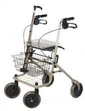 CSAK RENDELÉSRE! Stabil felépítésű, nagy terhelhetőségű, jól guruló, összehajtható, könnyen kezelhető, négykerekű, fékes, guruló járókeret. A könnyebb kanyarodás érdekében az első bolygókerekek csapágyazottak. A hátsó kerekekre ható fék egyszerűen kezelhető, a fékkart felfele mozgatva menet fékként, lefele mozgatva rögzítő-fékként használható. A magasságban – 80,5 - 99,5 cm között - állítható kéztámaszok elfordulás-biztosan rögzíthetőek, a beállítások egyszerűen kezelhető racsnis szorítócsavarokkal végezhetők. A kéztámaszok közt 43 cm hely van, a kerekek közt pedig 46,2 cm a lábtér. A járókeret tartozéka a 60,5 cm magasan elhelyezett PU habból készített ülőke, tálca, bottartó és a levehető drótkosár. Az ülőfelület 39 cm széles és 16 cm mély. Ez a típus egyszerűen összehajtható. A be-épített összehajtás elleni védelem lehetetlenné teszi a véletlen vagy menet közbeni összecsukást. Műszaki adatok: Vázszerkezet anyaga: acél, műanyag szinter bevonattal, a teleszkópos részeken krómozással. Súly: 9,5 kg, Kerekek: tömör 190 x 48 mm, Maximális terhelhetőség: 125 kg Új fejlesztés. A kedves beteg rá is tud ülni. 90 kg-ig terhelhető A termék OEP támogatott. Használat elött olvassa el a használati útmutatót és kérdezze meg kezelőorvosa véleményét! ISO: 12 06 - KÉT KARRAL MŰKÖDTETETT, JÁRÁST SEGÍTŐ ESZKÖZÖK Indikáció: Alsóvégtagok ízületeinek kopásos fájdalma, gyulladása, fejlődési rendellenessége, bénulása vagy időskori gyengesége esetén, alsóvégtag-sérülések postoperatív vagy konzervatív ellátására, alsóvégtag amputáció és protetizálás postoperatív fázisában, egyensúlyzavar esetén. Szakképesítési követelmény: ortopédia-traumatológia, ortopédia, traumatológia, fizikális medicina és rehabilitációs orvoslás, reumatológia, sebészet, érsebészet, gyermeksebészet, neurológia, gyermekneurológia, idegsebészet, geriátria, ismételt rendelés esetén a beteg háziorvosa is. ISO: 12 06 06 - Guruló járókeretek (rollátorok) Kiegészítő feltételek, megjegyzések az indikációhoz: A támogatási listában csillaggal (*) jelölt eszközök kizárólag 18 év alattiak számára rendelhetők. A járókeret használatánál a szakorvos tanácsát kell figyelembe venni a jobb teher mentesítés, vagy biztonságosabb járás érdekében. A járókerettel történő járástanuláskor törekedni kell arra, hogy használata a beteg automatikus használatává váljon. Ajánlatos a járástanulást az alábbiak szerint kezdeni: a járókeretet fix helyzetbe állítani, majd a lépés első fázisaként a keretet előre helyezni egy lépés távolságra, ezután a kevésbé beteg (gyengébb) végtaggal kezdeni az előrelépést, ugyanis a helytelen sorrendű terhelés következtében fellépő fájdalom az alsó végtag izületeinek becsuklását, adott esetben a beteg elesését okozhatja.