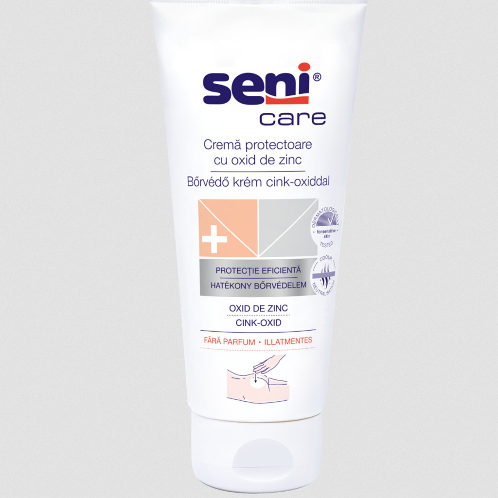 >A Seni Care cink-oxid tartalmű bőrvédő krémjének használata minden pelenkacsere alkalmával javasolt, irritált, kipirosodott bőrfelületre. Védelmet nyújt a gyulladások, kidörzsölődések és felfekvések ellen.