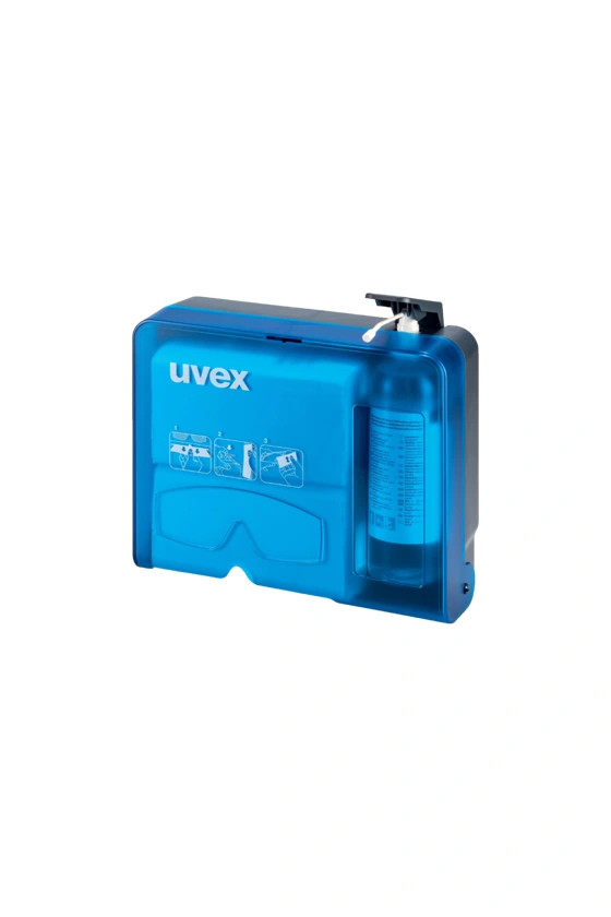 Falra szerelhető Uvex szemüvegtisztító állomás, használata megkönnyíti a védőszemüvegek tisztán tartását.